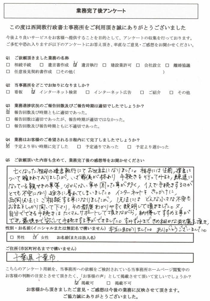女性のご依頼者様